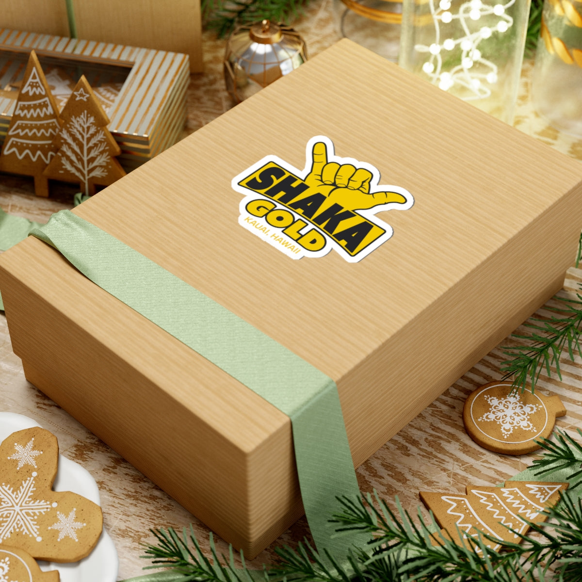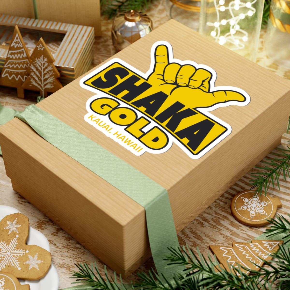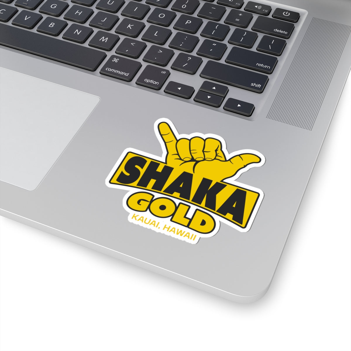 Shaka Gold Sticker — Kauai Hawaii Shaka Vibe Kiss-Cut Decal
